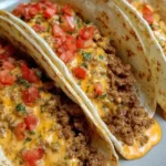 If you have leftovers, store the cheesy beef filling in an airtight container in the refrigerator for up to 3 days. The tortillas can be kept wrapped in plastic wrap in the same timeframe. Reheat the beef mixture on the stovetop or in the microwave before assembling your tacos again. It’s best to warm fresh tortillas as needed to maintain their softness.