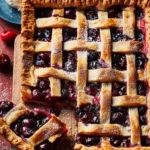 Serve slices of Cherry & Sour Cream Slab Pie at room temperature or slightly chilled, making it a refreshing dessert for warm days. Pair it with whipped cream or a scoop of vanilla ice cream for added indulgence. This pie also makes a beautiful centerpiece at potlucks and family gatherings.
