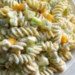 Serve this pasta salad chilled as a side dish to grilled meats, alongside sandwiches, or even as a light lunch option. It’s a great addition to potlucks, picnics, and family gatherings, and it pairs perfectly with a chilled beverage like lemonade or iced tea.
