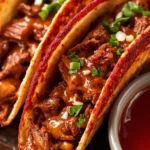Delicious Crock Pot Birria Tacos filled with tender, flavorful shredded pork and rich birria sauce.