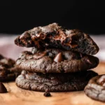 Indulge in warm, freshly baked double chocolate chip cookies with rich, chocolate flavor and a perfect balance between soft, chewy centers and crispy edges.