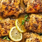 A vibrant and flavorful dish featuring marinated chicken thighs roasted to perfection, infused with the refreshing tastes of lemon, garlic, and herbs.