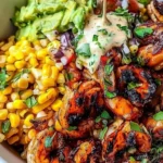 This Grilled Shrimp Bowl is not just a feast for the eyes but also for the taste buds! The juicy grilled shrimp contrast beautifully with the creamy avocado and sweet corn, while the fresh lime juice adds a zesty kick. It’s a flexible recipe, allowing you to use ingredients already in your kitchen. Plus, it’s quick to prepare, requiring less than 30 minutes from start to finish—perfect for busy weeknights or leisurely weekends.