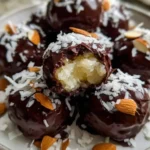 Delightful homemade snacks featuring a chewy coconut base, rich dark chocolate, and crunchy almonds, perfect for satisfying your sweet tooth.