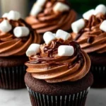 Delightful cupcakes bursting with rich chocolate flavor and topped with fluffy frosting, capturing the essence of a classic hot cocoa.