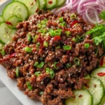 Korean Ground Beef with Cucumber Salad is a delicious and easy-to-make dish that combines the hearty flavors of savory ground beef with a refreshing cucumber salad. It’s perfect for busy weeknights or when you want to impress guests with minimal effort. The combination of tender beef mixed with the crunch of cucumbers and the zing of rice vinegar creates a delightful harmony of textures and flavors, making it a meal that everyone will love.