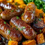 A delightful one-pan meal combining savory sausage and the natural sweetness of roasted sweet potatoes.