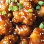 Pour the prepared sauce into the same pan and simmer it for about 1 minute until thickened. Return the crispy chicken to the pan, gently tossing it to coat with the luscious sauce. For a finishing touch, garnish your chicken with finely chopped green onions and toasted sesame seeds.