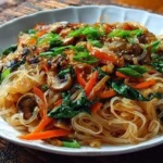 Rice Noodle Stir-Fry is a vibrant and delicious dish that brings together the satisfying chewiness of rice noodles with a colorful array of vegetables. Whether you’re in search of a quick weeknight dinner or a dish to impress friends at a small gathering, this stir-fry delivers on flavor and convenience. The freshness of the veggies, paired with the savory soy sauce, creates a perfect harmony that will have everyone reaching for seconds.