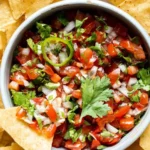 A vibrant, fresh salsa that brings together juicy tomatoes, spicy jalapeños, and zesty lime juice, perfect for gatherings or a snack at home.