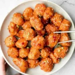 Delightful fusion of crispy chicken and sweet, tangy sauce, perfect for appetizers or party snacks.